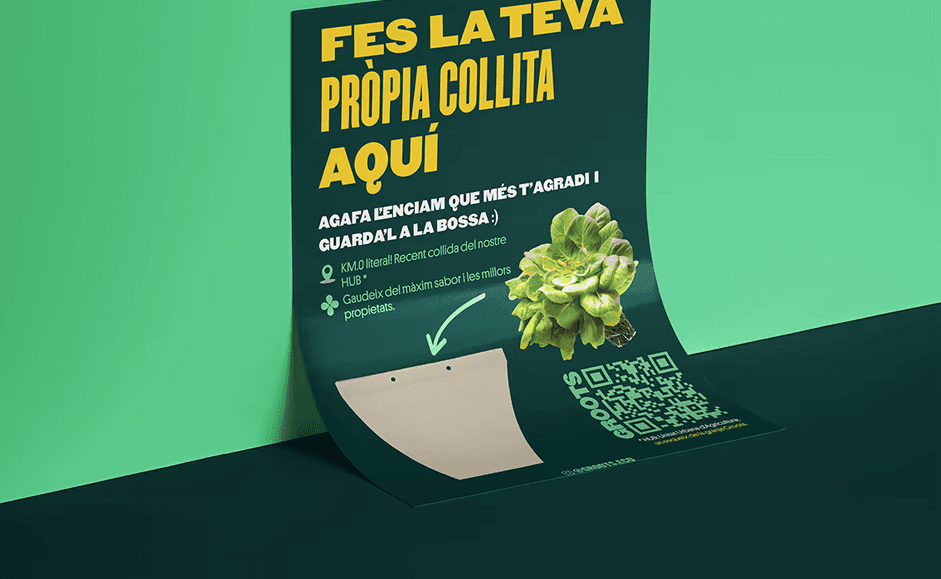 The project includes the design of in-store marketing materials such as posters and informational wobblers displayed in supermarkets. These pieces aim to clearly communicate product features and company values, adapting the message to a commercial and customer-facing environment.
