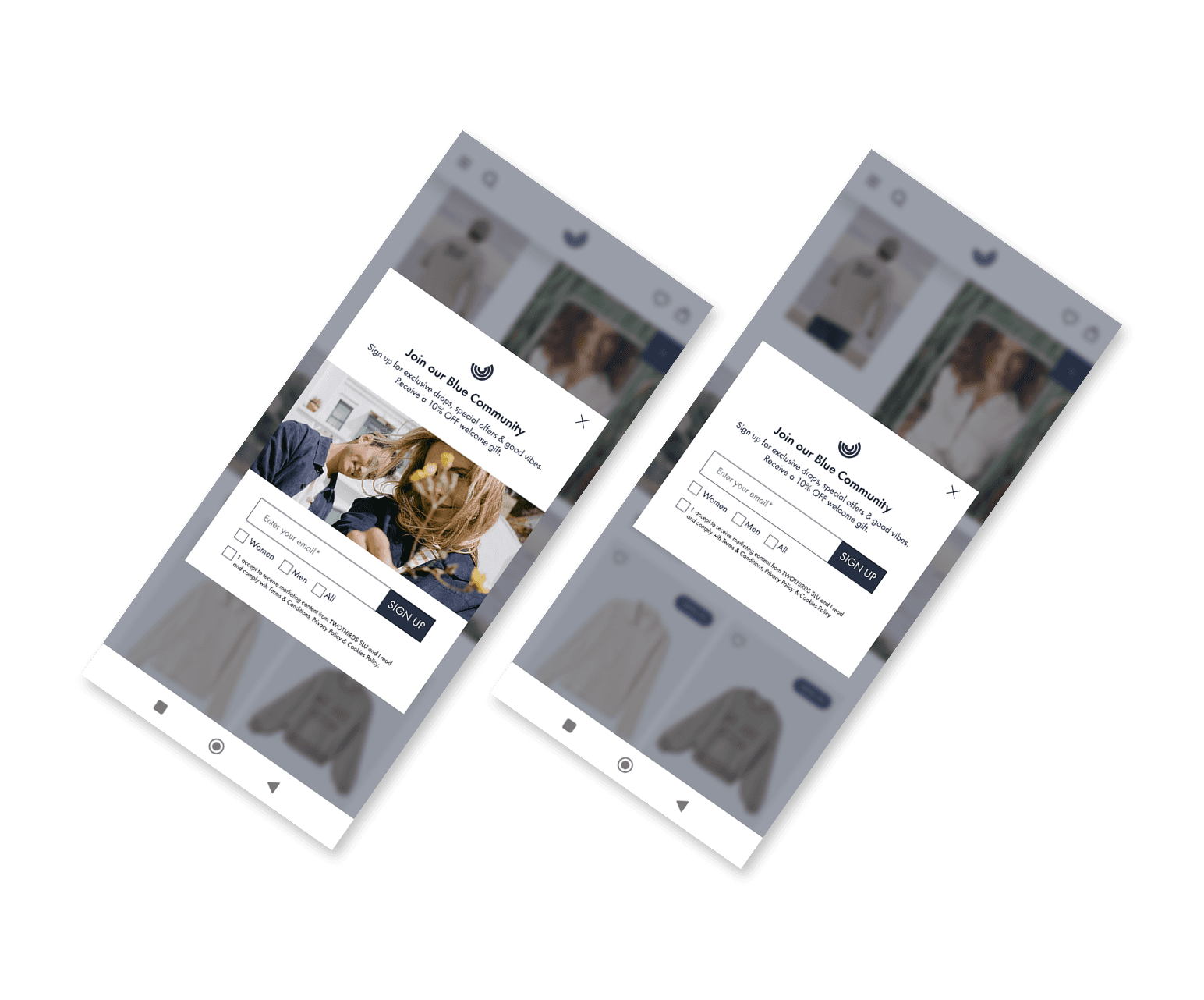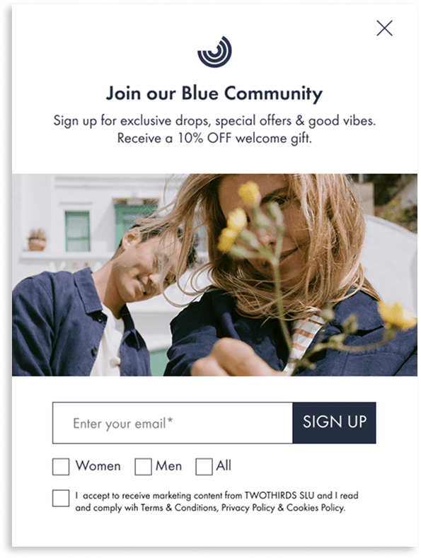*Versions A and B were initially compared, with the image-based variant performing better. The winning version was then tested against the original pop-up, with no statistically significant differences observed. However, personalized content preferences were added in the second step, after users clicked “Sign Up,” improving usability and enabling more tailored newsletter communication.