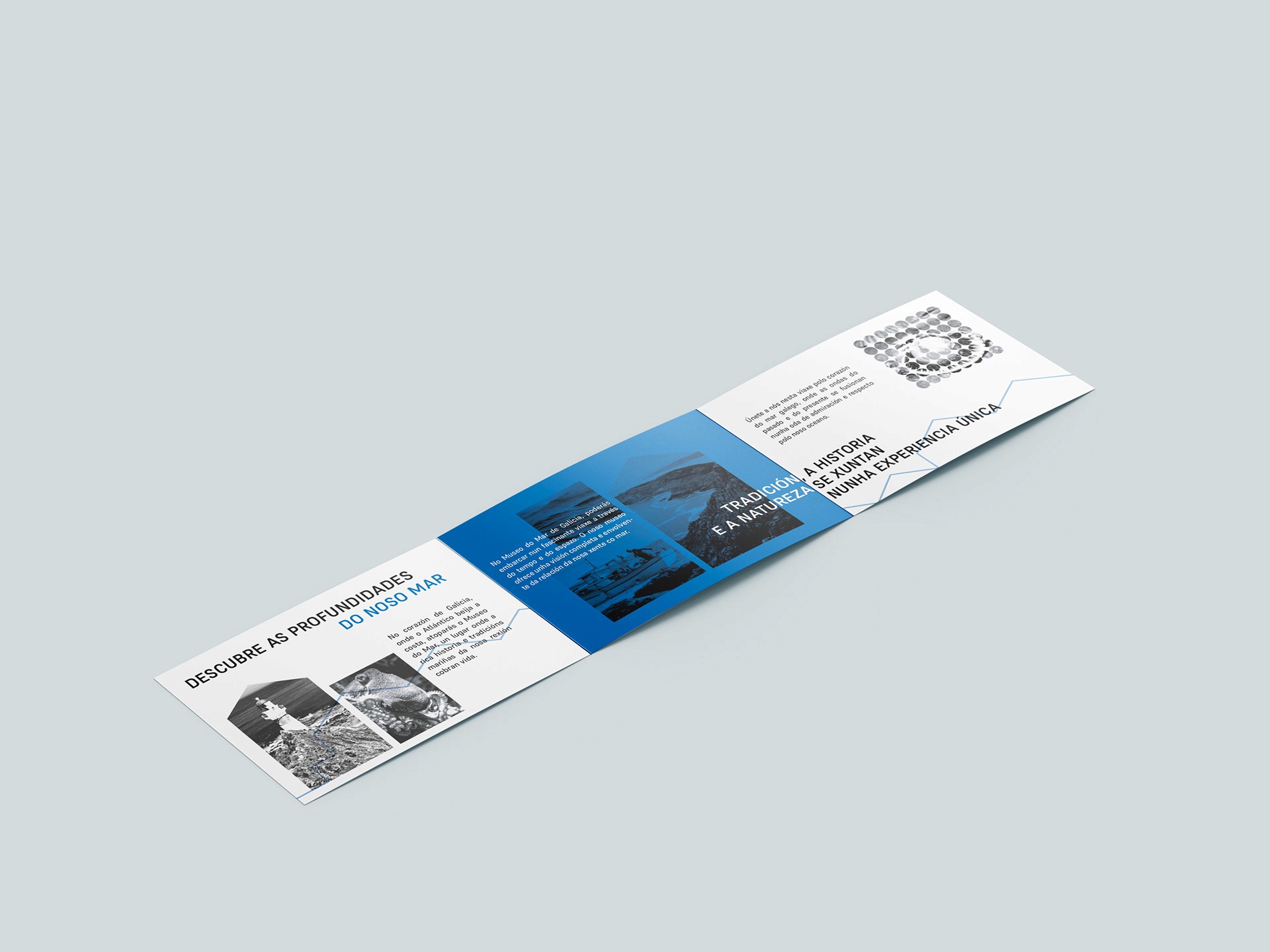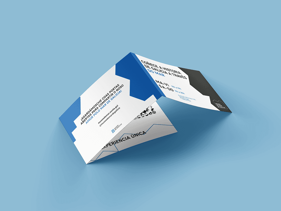 Typography was carefully selected to balance readability with personality, reflecting the museum’s maritime theme and contemporary approach. The color palette evokes the sea and Galicia’s coastal environment, enhancing brand recognition and visual cohesion across all materials.